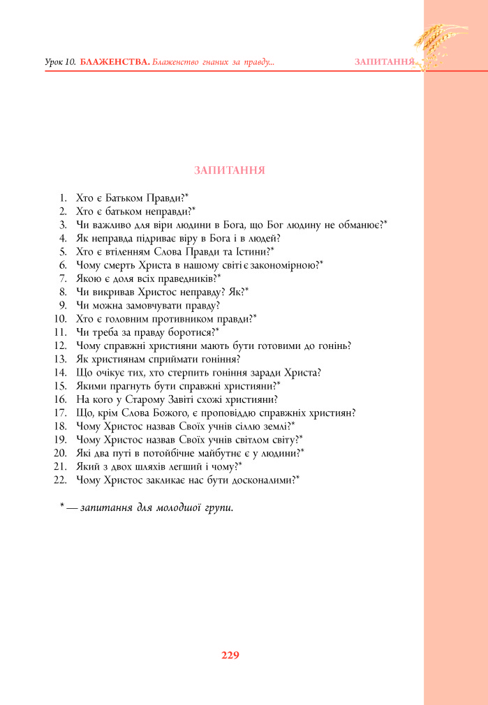 Закон Божий. 2 клас. Урок 10. Запитання